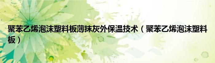 关于聚苯乙烯泡沫塑料板薄抹灰外保温技术,聚苯乙烯泡沫塑料板这个很多人还不知道,今天菲菲来为大家解答以上的问题,现在让我们一起来看看吧!
