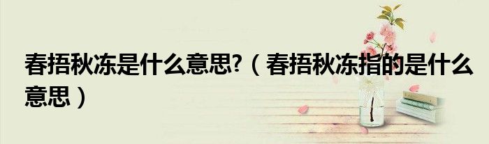 关于春捂秋冻是什么意思?,春捂秋冻指的是什么意思这个很多人还不知道,今天菲菲来为大家解答以上的问题,现在让我们一起来看看吧!