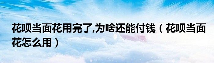 大家好,小晋来为大家解答以下问题,关于花呗当面花用完了,为啥还能付钱,花呗当面花怎么用很多人还不知道,今天让我们一起来看看吧!
