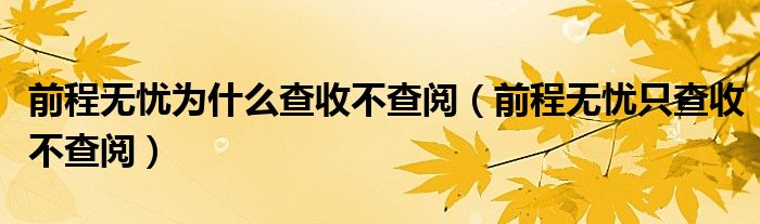 前程无忧为什么查收不查阅(前程无忧只查收不查阅)