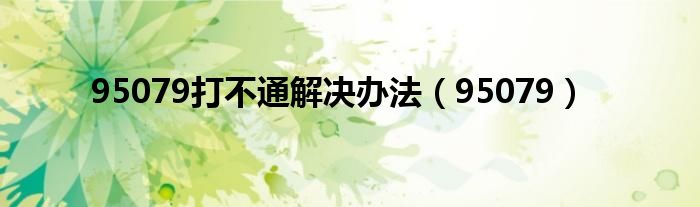 大家好,小晋来为大家解答以下问题,关于95079打不通解决办法,95079很多人还不知道,今天让我们一起来看看吧!
