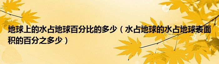 关于地球上的水占地球百分比的多少,水占地球的水占地球表面积的百分之多少这个很多人还不知道,今天菲菲来为大家解答以上的问题,现在让我们一起来看看吧!
