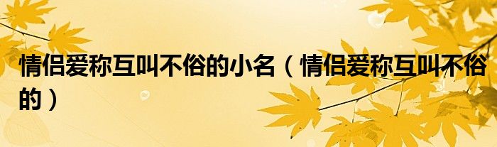 大家好,小晋来为大家解答以下问题,关于情侣爱称互叫不俗的小名,情侣爱称互叫不俗的很多人还不知道,今天让我们一起来看看吧!