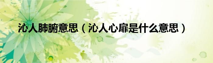 大家好,小晋来为大家解答以下问题,关于沁人肺腑意思,沁人心扉是什么意思很多人还不知道,今天让我们一起来看看吧!