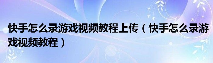 大家好,小晋来为大家解答以下问题,关于快手怎么录游戏视频教程上传,快手怎么录游戏视频教程很多人还不知道,今天让我们一起来看看吧!