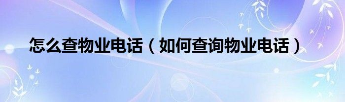 怎么查物业电话(如何查询物业电话)