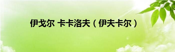 关于伊戈尔 卡卡洛夫,伊夫卡尔这个很多人还不知道,今天菲菲来为大家解答以上的问题,现在让我们一起来看看吧!