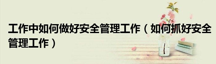关于工作中如何做好安全管理工作,如何抓好安全管理工作这个很多人还不知道,今天菲菲来为大家解答以上的问题,现在让我们一起来看看吧!
