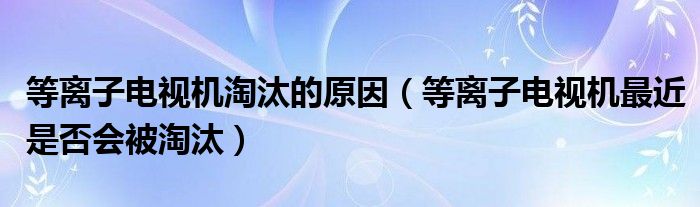 关于等离子电视机淘汰的原因,等离子电视机最近是否会被淘汰这个很多人还不知道,今天菲菲来为大家解答以上的问题,现在让我们一起来看看吧!