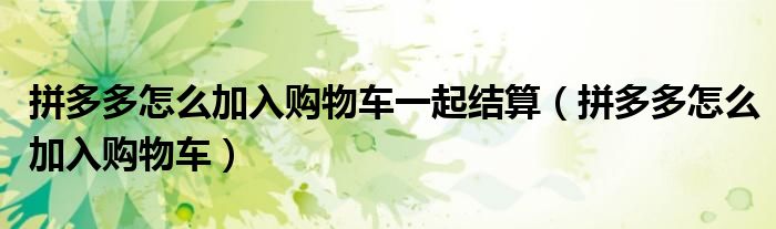 大家好,小晋来为大家解答以下问题,关于拼多多怎么加入购物车一起结算,拼多多怎么加入购物车很多人还不知道,今天让我们一起来看看吧!
