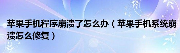 关于苹果手机程序崩溃了怎么办,苹果手机系统崩溃怎么修复这个很多人还不知道,今天菲菲来为大家解答以上的问题,现在让我们一起来看看吧!
