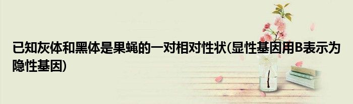 关于已知灰体和黑体是果蝇的一对相对性状(显性基因用B表示为隐性基因)这个很多人还不知道,今天菲菲来为大家解答以上的问题,现在让我们一起来看看吧!