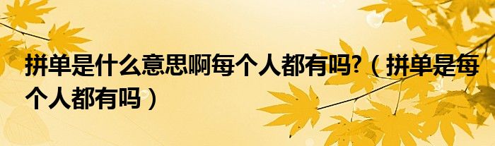 大家好,小晋来为大家解答以下问题,关于拼单是什么意思啊每个人都有吗?,拼单是每个人都有吗很多人还不知道,今天让我们一起来看看吧!