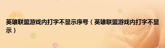 关于英雄联盟游戏内打字不显示序号,英雄联盟游戏内打字不显示这个很多人还不知道,今天菲菲来为大家解答以上的问题,现在让我们一起来看看吧!