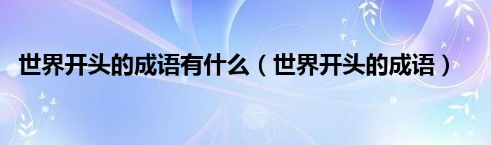 大家好,小晋来为大家解答以下问题,关于世界开头的成语有什么,世界开头的成语很多人还不知道,今天让我们一起来看看吧!