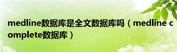 关于medline数据库是全文数据库吗,medline complete数据库这个很多人还不知道,今天菲菲来为大家解答以上的问题,现在让我们一起来看看吧!