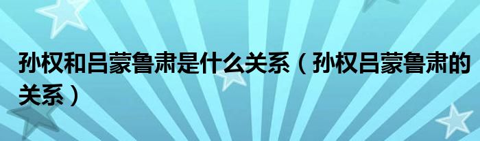 关于孙权和吕蒙鲁肃是什么关系,孙权吕蒙鲁肃的关系这个很多人还不知道,今天菲菲来为大家解答以上的问题,现在让我们一起来看看吧!