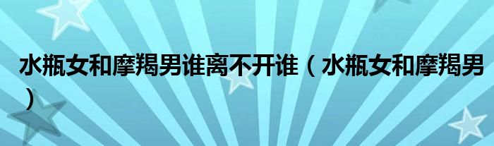 关于水瓶女和摩羯男谁离不开谁,水瓶女和摩羯男这个很多人还不知道,今天菲菲来为大家解答以上的问题,现在让我们一起来看看吧!