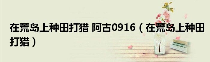 大家好,小晋来为大家解答以下问题,关于在荒岛上种田打猎 阿古0916,在荒岛上种田打猎很多人还不知道,今天让我们一起来看看吧!