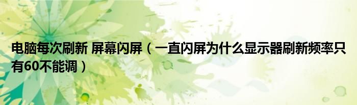 关于电脑每次刷新 屏幕闪屏,一直闪屏为什么显示器刷新频率只有60不能调这个很多人还不知道,今天菲菲来为大家解答以上的问题,现在让我们一起来看看吧!