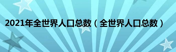 关于2021年全世界人口总数,全世界人口总数这个很多人还不知道,今天菲菲来为大家解答以上的问题,现在让我们一起来看看吧!