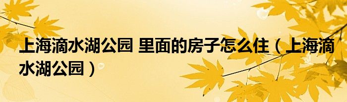 关于上海滴水湖公园 里面的房子怎么住,上海滴水湖公园这个很多人还不知道,今天菲菲来为大家解答以上的问题,现在让我们一起来看看吧!