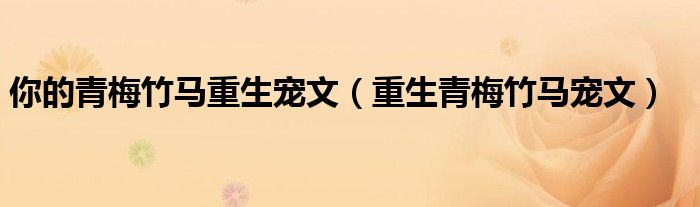 大家好,小晋来为大家解答以下问题,关于你的青梅竹马重生宠文,重生青梅竹马宠文很多人还不知道,今天让我们一起来看看吧!
