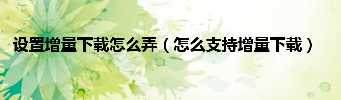 大家好,小晋来为大家解答以下问题,关于设置增量下载怎么弄,怎么支持增量下载很多人还不知道,今天让我们一起来看看吧!