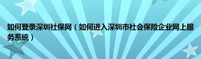 如何登录深圳社保网(如何进入深圳市社会保险企业网上服务系统)