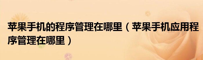 大家好,小晋来为大家解答以下问题,关于苹果手机的程序管理在哪里,苹果手机应用程序管理在哪里很多人还不知道,今天让我们一起来看看吧!