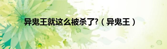 大家好,小晋来为大家解答以下问题,关于异鬼王就这么被杀了?,异鬼王很多人还不知道,今天让我们一起来看看吧!