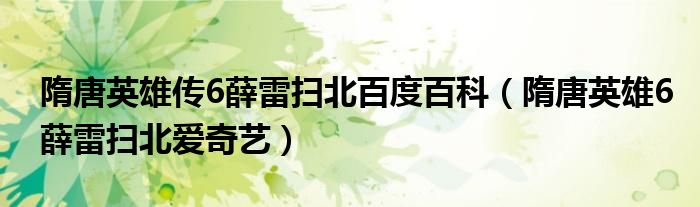 关于隋唐英雄传6薛雷扫北百度百科,隋唐英雄6薛雷扫北爱奇艺这个很多人还不知道,今天菲菲来为大家解答以上的问题,现在让我们一起来看看吧!
