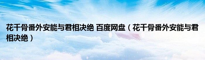 关于花千骨番外安能与君相决绝 百度网盘,花千骨番外安能与君相决绝这个很多人还不知道,今天菲菲来为大家解答以上的问题,现在让我们一起来看看吧!