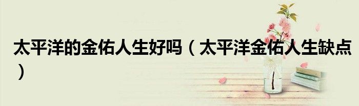 关于太平洋的金佑人生好吗,太平洋金佑人生缺点这个很多人还不知道,今天菲菲来为大家解答以上的问题,现在让我们一起来看看吧!