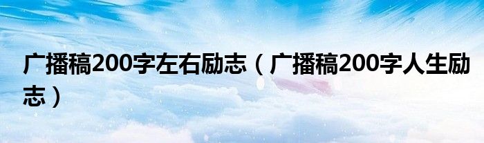关于广播稿200字左右励志,广播稿200字人生励志这个很多人还不知道,今天菲菲来为大家解答以上的问题,现在让我们一起来看看吧!