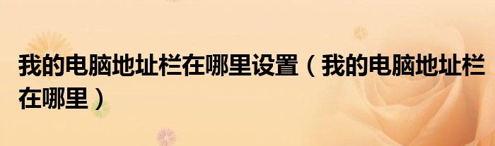 关于我的电脑地址栏在哪里设置,我的电脑地址栏在哪里这个很多人还不知道,今天菲菲来为大家解答以上的问题,现在让我们一起来看看吧!