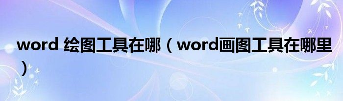 关于word 绘图工具在哪,word画图工具在哪里这个很多人还不知道,今天菲菲来为大家解答以上的问题,现在让我们一起来看看吧!