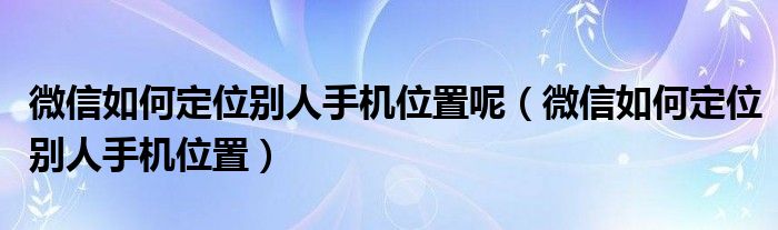 微信如何定位别人手机位置呢(微信如何定位别人手机位置)
