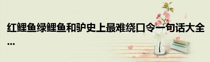 关于红鲤鱼绿鲤鱼和驴史上最难绕口令一句话大全...这个很多人还不知道,今天菲菲来为大家解答以上的问题,现在让我们一起来看看吧!