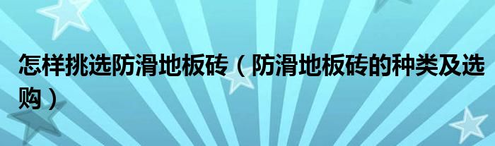 关于怎样挑选防滑地板砖,防滑地板砖的种类及选购这个很多人还不知道,今天菲菲来为大家解答以上的问题,现在让我们一起来看看吧!