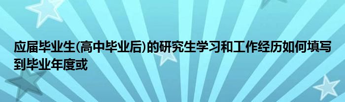关于应届毕业生(高中毕业后)的研究生学习和工作经历如何填写到毕业年度或这个很多人还不知道,今天菲菲来为大家解答以上的问题,现在让我们一起来看看吧!