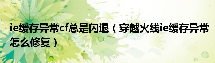关于ie缓存异常cf总是闪退,穿越火线ie缓存异常怎么修复这个很多人还不知道,今天菲菲来为大家解答以上的问题,现在让我们一起来看看吧!