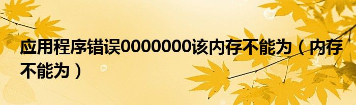 大家好,来宝来为大家解答以下问题,应用程序错误0000000该内存不能为,内存不能为很多人还不知道,今天让我们一起来看看吧!
