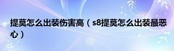 大家好,小晋来为大家解答以下问题,关于提莫怎么出装伤害高,s8提莫怎么出装最恶心很多人还不知道,今天让我们一起来看看吧!