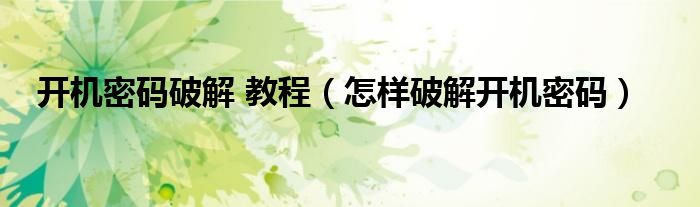 大家好,来宝来为大家解答以下问题,开机密码破解 教程,怎样破解开机密码很多人还不知道,今天让我们一起来看看吧!