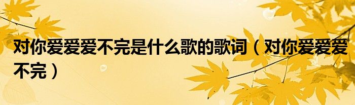 关于对你爱爱爱不完是什么歌的歌词,对你爱爱爱不完这个很多人还不知道,今天菲菲来为大家解答以上的问题,现在让我们一起来看看吧!