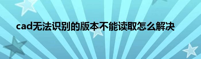 关于cad无法识别的版本不能读取怎么解决这个很多人还不知道,今天菲菲来为大家解答以上的问题,现在让我们一起来看看吧!