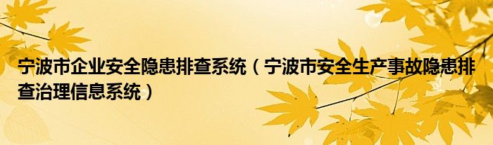 关于宁波市企业安全隐患排查系统,宁波市安全生产事故隐患排查治理信息系统这个很多人还不知道,今天菲菲来为大家解答以上的问题,现在让我们一起来看看吧!