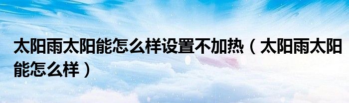大家好,来宝来为大家解答以下问题,太阳雨太阳能怎么样设置不加热,太阳雨太阳能怎么样很多人还不知道,今天让我们一起来看看吧!