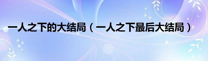 一人之下的大结局(一人之下最后大结局)